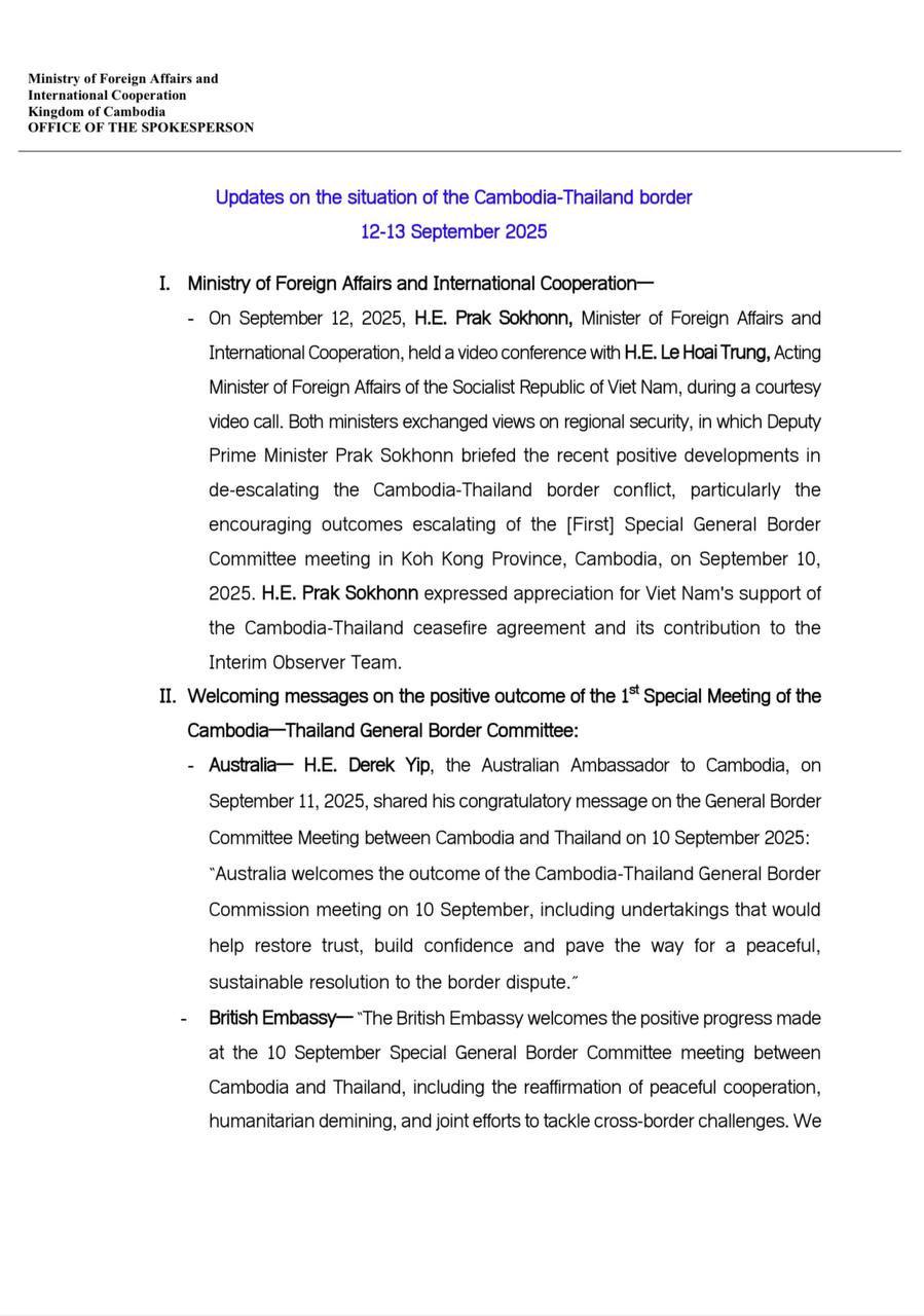 Updates on the situation along the Cambodia-Thailand Border on 12-13 September 2025