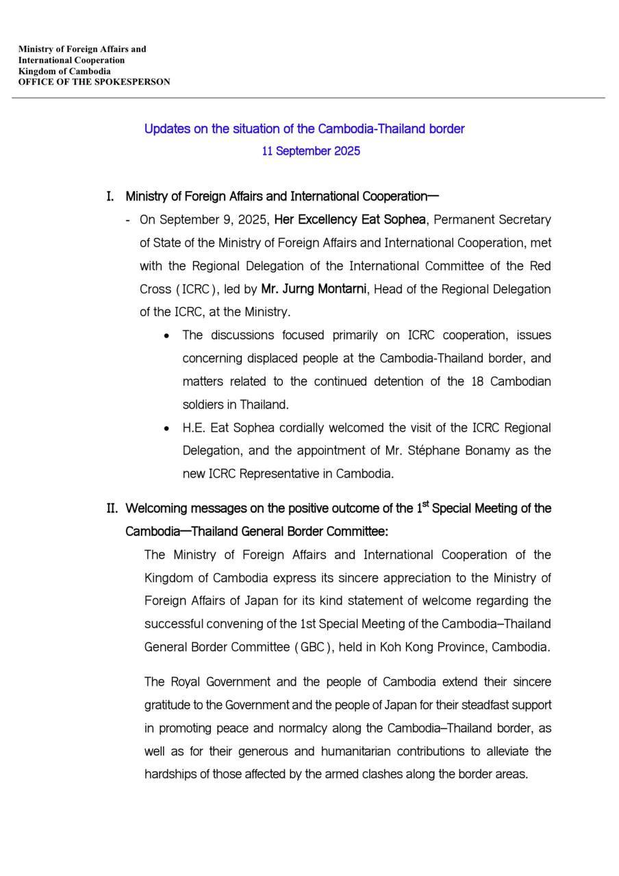 Updates on the situation along the Cambodia-Thailand Border on 11 September 2025