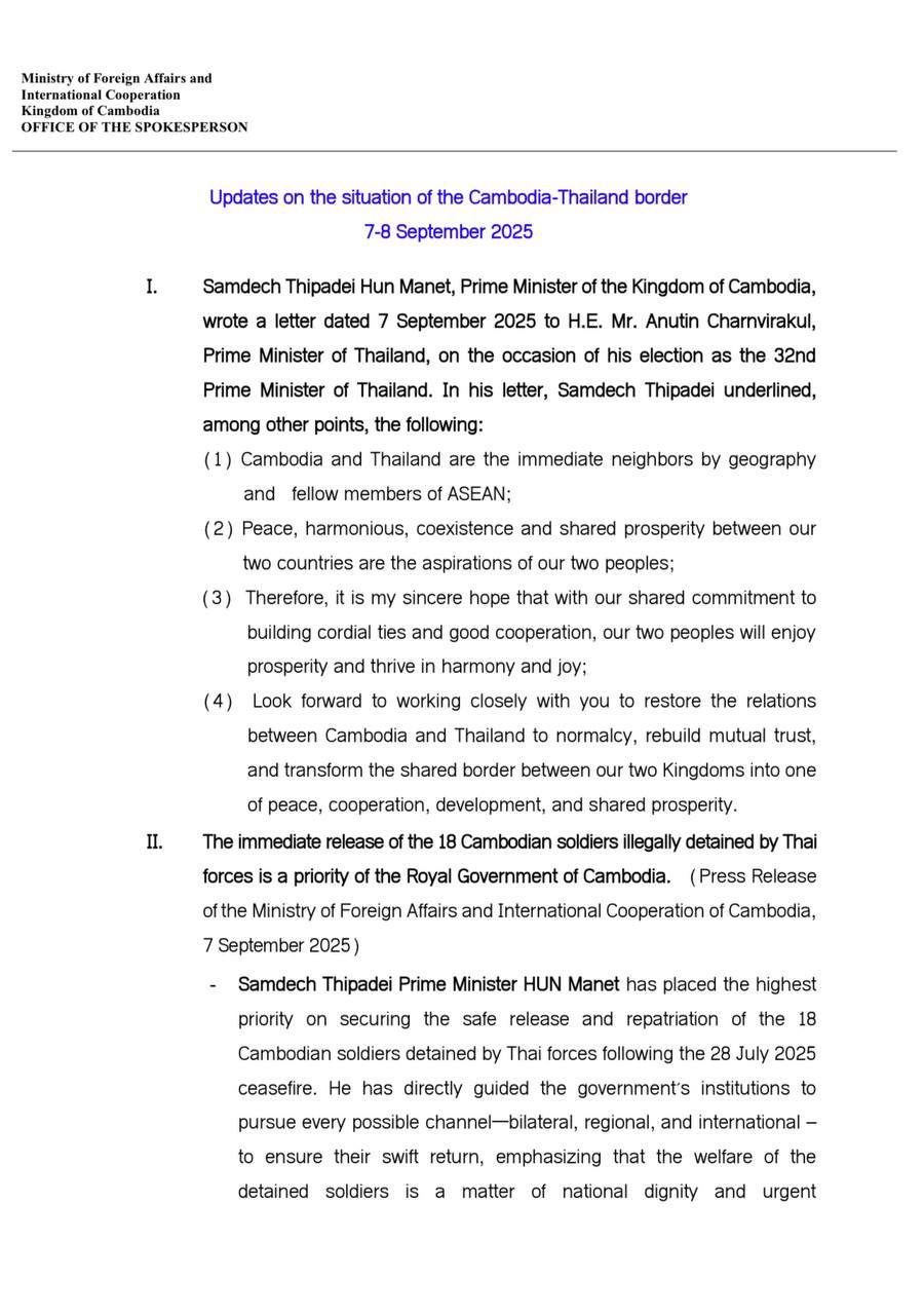 Updates on the situation along the Cambodia-Thailand Border on 7-8 September 2025