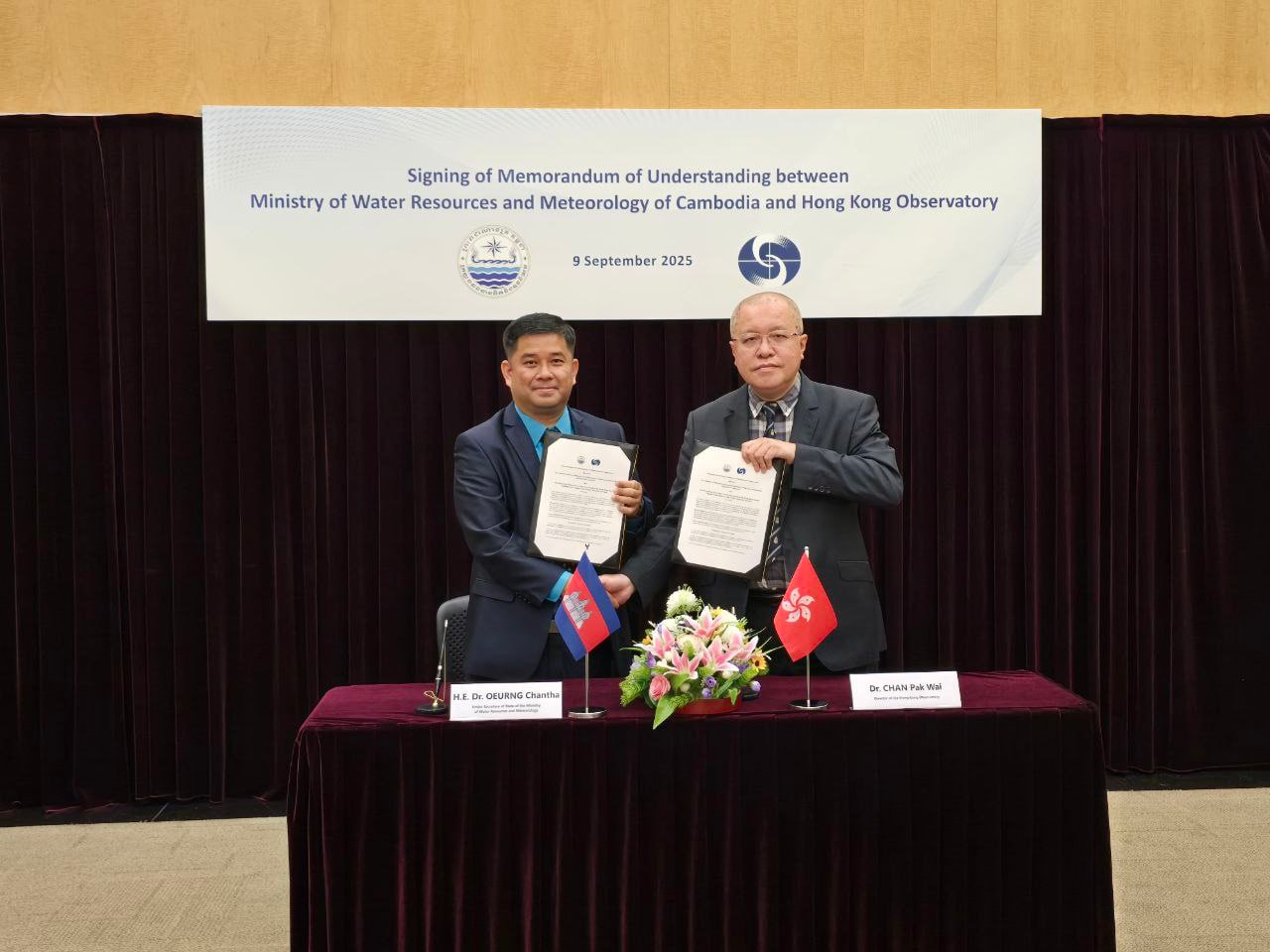 AKP Phnom Penh, September 09, 2025 -- The Ministry of Water Resources and Meteorology (MOWRAM) and the Hong Kong Observatory of the Government of the Hong Kong Special Administrative Region have reached a memorandum of understanding (MoU) on meteorological cooperation....