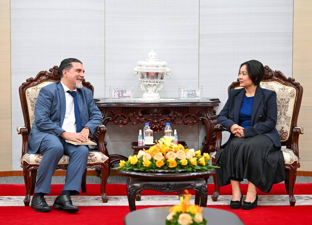AKP Phnom Penh, September 08, 2025 -- H.E. Dr. Chea Serey, Governor of the National Bank of Cambodia (NBC), received here on Sept. 8 Mr. Enrico Gaveglia, the new Representative of the United Nations Development Programme (UNDP) to Cambodia, and his colleagues. Dur...