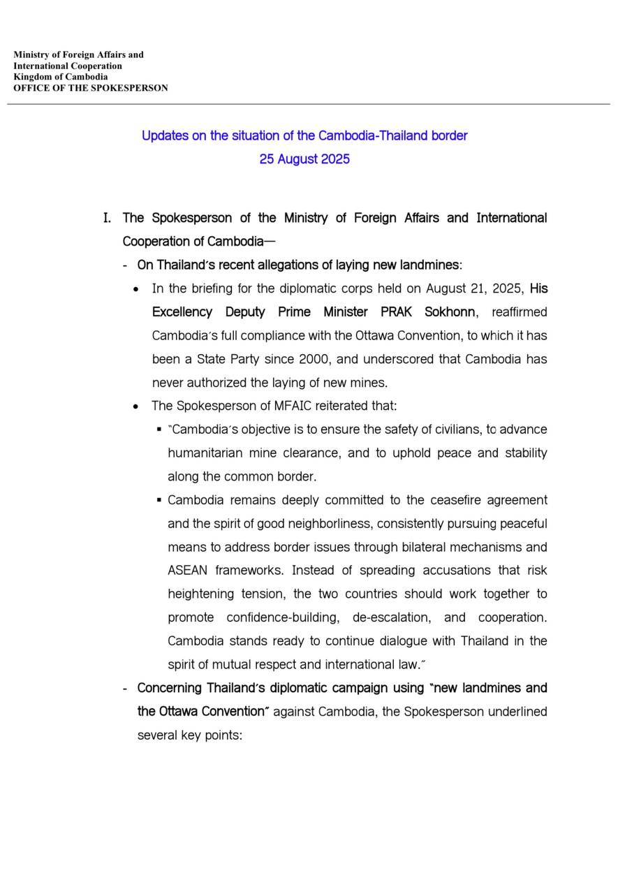 Updates on Situation along Cambodia-Thailand Border on Aug. 25