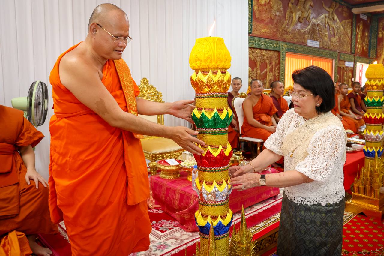 AKP Phnom Penh, August 14, 2025 -- Samdech Maha Rathsapheathika Thipadei Khuon Sudary, President of the National Assembly of the Kingdom of Cambodia, on Thursday morning offered Buddhist Lent (Vossa) candles and other offerings to monks at Wat Vimean Techeah, known a...