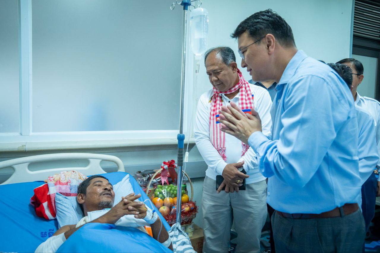AKP Phnom Penh, August 05, 2025 -- H.E. Dith Tina, Minister of Agriculture, Forestry, and Fisheries, and Head of the Royal Government Working Group for Banteay Meanchey Province, visited two wounded soldiers currently receiving treatment at the Cambodia-Japan F...