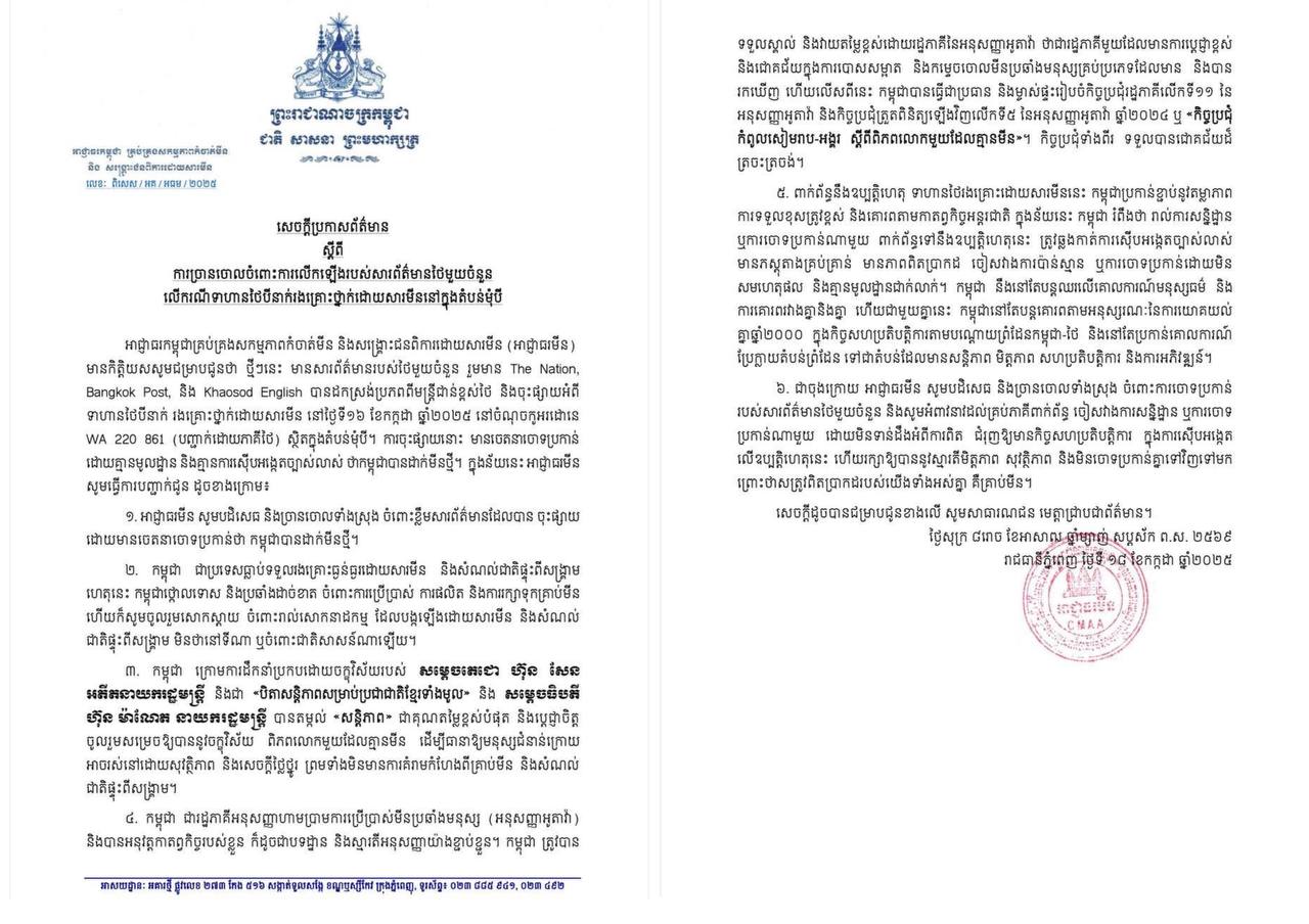 AKP Phnom Penh, July 18, 2025 -- The Cambodian Mine Action and Victim Assistance Authority (CMAA) has firmly rejected recent Thai media reports alleging that Cambodia was responsible for a landmine incident that injured three Thai soldiers. According to CMAA, seve...