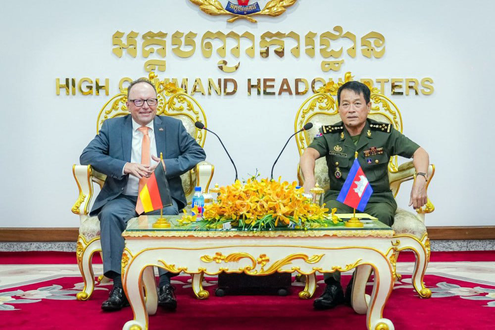 AKP Phnom Penh, July 18, 2025 -- H.E. Gen. Vong Pisen, Commander-in-Chief of the Royal Cambodian Armed Forces (RCAF), on July 17 hosted a courtesy call from H.E. Stefan Messerer, Ambassador of Germany to Cambodia, and Lieutenant Colonel Mark Steffen Gottschalk, Germa...