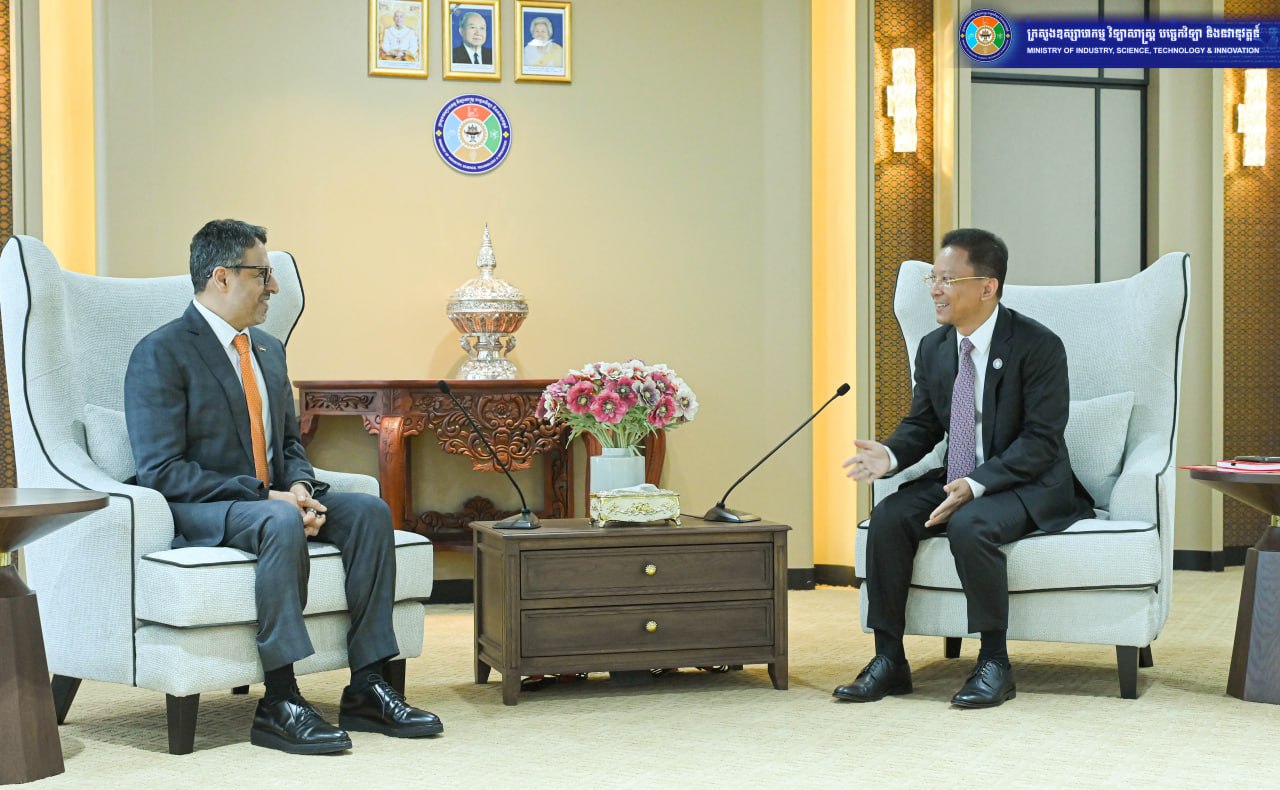 AKP Phnom Penh, May 21, 2025 -- H.E. Hem Vanndy, Minister of Industry, Science, Technology & Innovation, met here on May 21 with H.E. Obaid Saeed Obaid Bintaresh Aldhaheri, Ambassador of the United Arab Emirates (UAE) to Cambodia, to discuss bilateral cooperation...