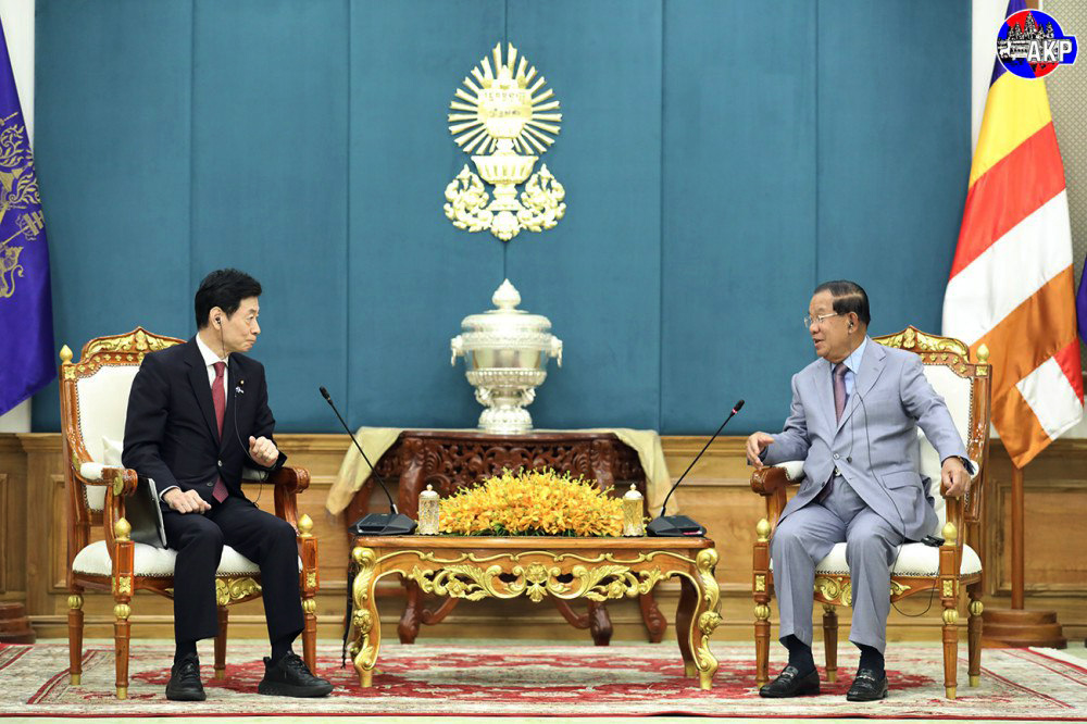 AKP Phnom Penh, May 02, 2025 -- Samdech Akka Moha Sena Padei Techo Hun Sen, President of the Senate of Cambodia, received H.E. NISHIMURA Yasutoshi, Member of Japan’s House of Representatives and former Minister of Economy, Trade and Industry, during a courtesy call a...