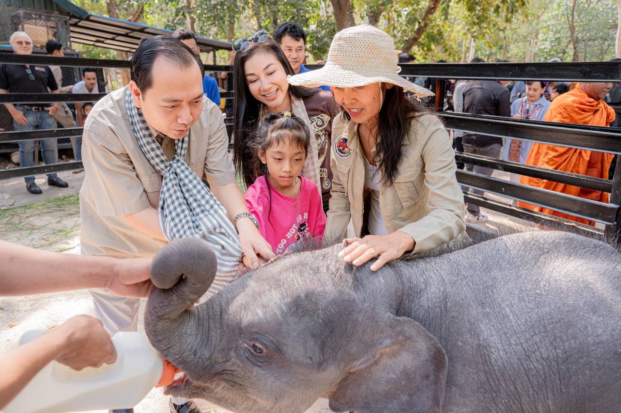 H.E. Neth Pheaktra Visits Rescued Elephant Calf "Somnang Lomphat" at Phnom Tamao Wildlife Rescue Centre
