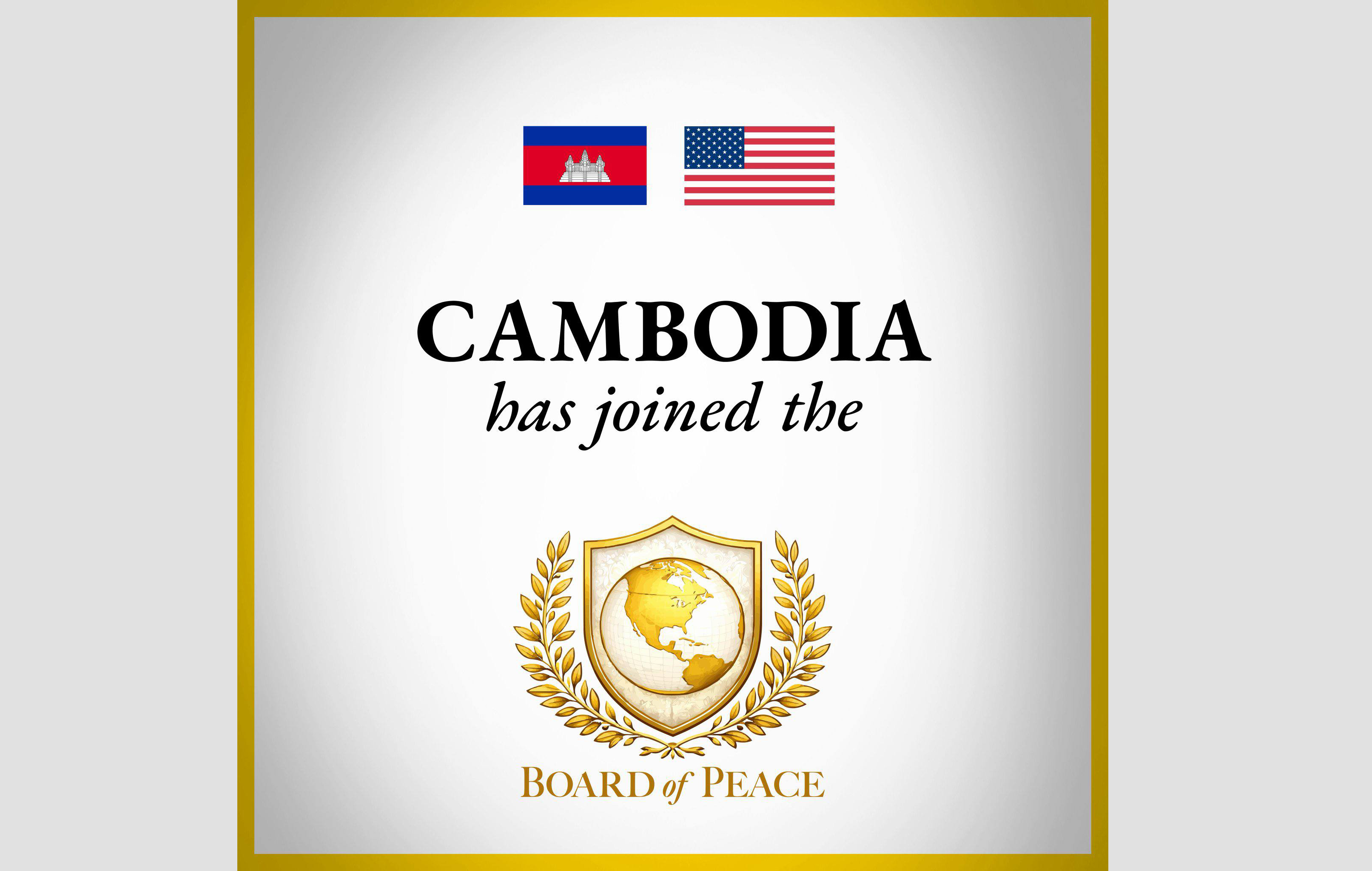 AKP Phnom Penh, January 28, 2026 -- Cambodia has officially become a founding member of the U.S.-initiated Board of Peace, reaffirming its long-standing commitment to global peace and international cooperation. “The Board of Peace welcomes Cambodia as a foun...