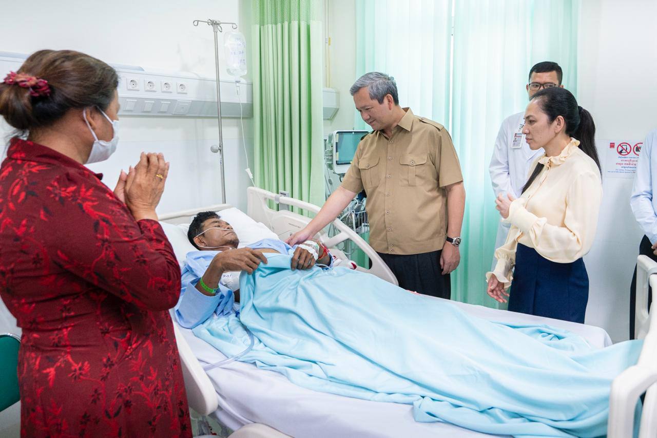 Cambodian PM & Spouse Visit Wounded Soldiers and Police in Phnom Penh