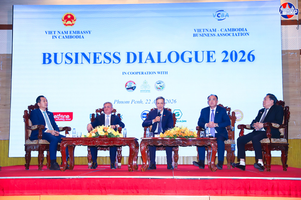 AKP Phnom Penh, le 22 avril 2026 — L'ambassade du Vietnam au Cambodge et l'Association d'affaires Vietnam-Cambodge organisent cet après-midi, dans les locaux de l'ambassade, le « Dialogue d'affaires Vietnam-Cambodge 2026 ». Y participaient Nguyen Minh Vu (au centre, photo 1), ambassadeur...