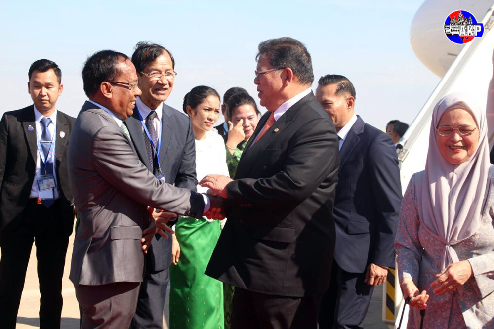 La haute délégation parlementaire malaisienne a été chaleureusement accueillie à son arrivée à l'aéroport international de Phnom Penh par Vong Sauth, deuxième vice-président de l'AN, et de nombreux autres députés cambodgiens.