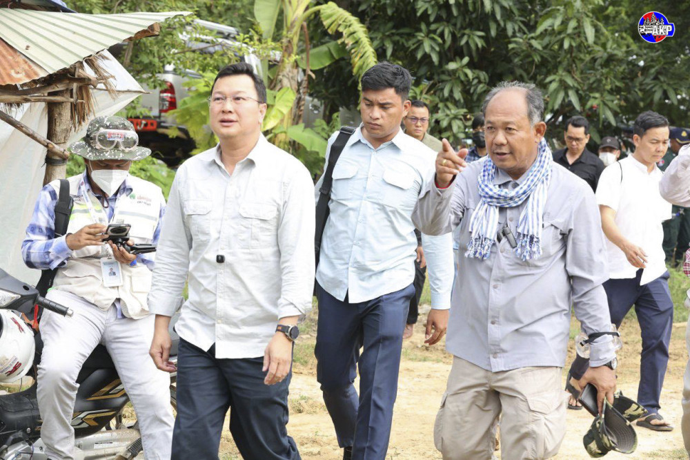 Dith Tina (gauche, photo 1), ministre de l'Agriculture, des Forêts, de la Chasse et de la Pêche et chef du Groupe de travail du gouvernement royal pour la province de Banteay Meanchey, accompagnée d’Oum Reatrey, gouverneur de la province de Banteay Meanchey, rend visite cet après-midi au vénérable Nhel Di, chef des bonzes de la pagode de Prey Chan, ainsi qu'à quelques autres victimes blessées par les violences commises par les forces mixtes thaïlandaises dans l'après-midi du 17 septembre 2025 dans le village de Prey Chan, commune d'O' Beichoan, district d'O' Chrov, province de Banteay Meanchey.
