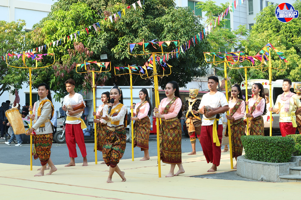 Les danseurs portent des costumes, des masques et coiffures différents en fonctions du rôle qu’ils jouent. Ils chantent et dansent au son des tambours et de petits instruments : hautbois, “Tror Ou” et “Tror Sor” (violon khmer à deux cordes).