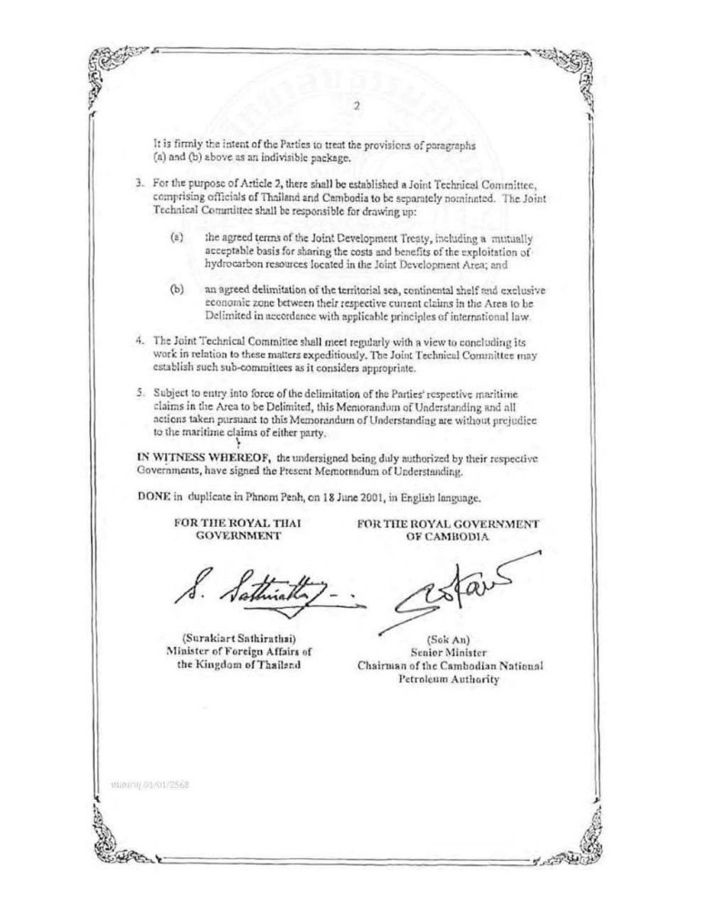 Le Cambodge a réaffirmé, pour sa part, son attachement constant à la lettre et à l’esprit du MOU-2001, ainsi qu’aux principes de bonne volonté et de bonne foi qui avaient guidé sa conclusion en 2001.