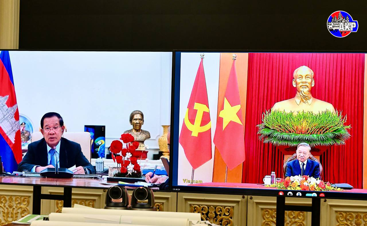 AKP Kandal, August 14, 2025– Samdech Akka Moha Sena Padei Techo Hun Sen, President of the Cambodian People’s Party (CPP), holds talks with H.E. To Lam, General Secretary of the Communist Party of Vietnam (CPV), via Videoconference from his residence in Takhmao town, Kandal...
