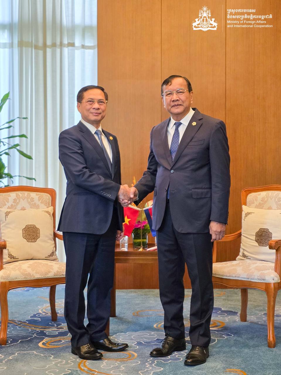 AKP Anning, August 15, 2025— Cambodia’s Deputy Prime Minister and Minister of Foreign Affairs and International Cooperation, H.E. Prak Sokhonn (R, Pic. 1) shakes hands with H.E. Bui Thanh Son, Deputy Prime Minister and Minister of Foreign Affairs of the Socialist Republic of Vietn...