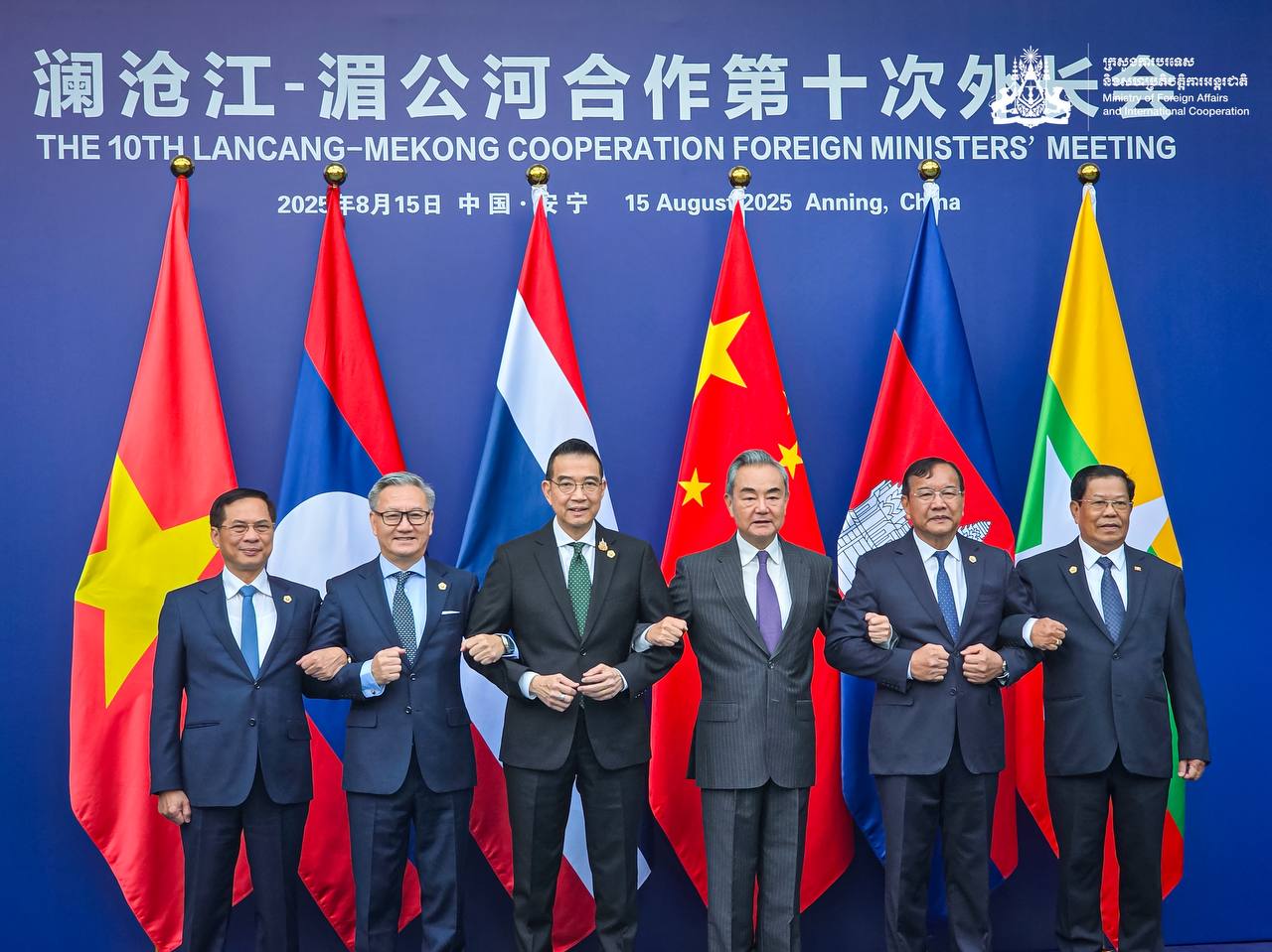 AKP Anning, August 15, 2025— H.E. Prak Sokhonn (2nd R, Pic. 1), Cambodian Deputy Prime Minister and Minister of Foreign Affairs and International Cooperation of the Kingdom of Cambodia, poses for a group photo with other Mekong–Lancang Cooperation (MLC) Foreign Ministers at...