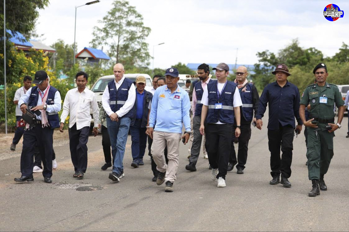 AKP Banteay Meanchey, August 15, 2025 -- A group of national and international journalists inspects the actual situation at Prey Chan village in O’ Bei Choan commune, O’ Chrov district, Banteay Meanchey province this afternoon, after Thai soldiers have illegall...