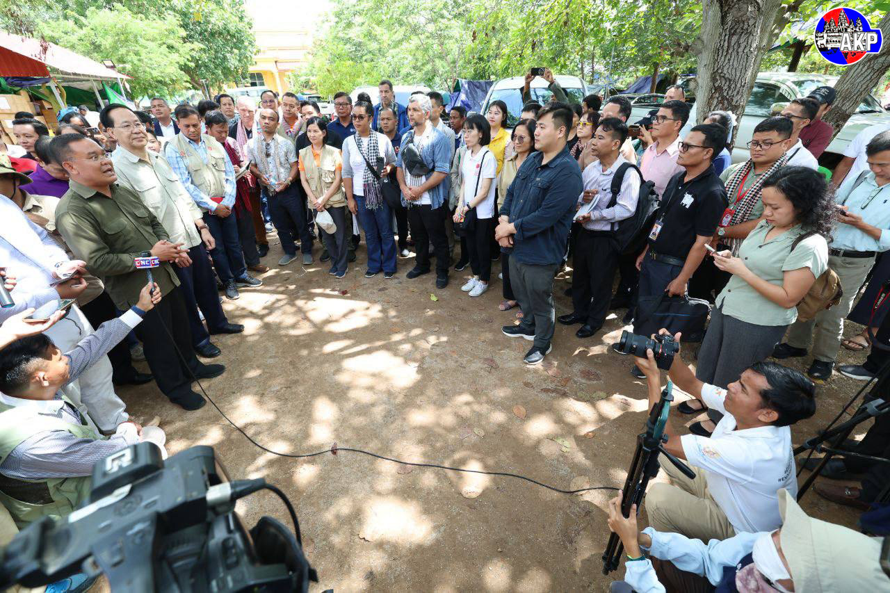 AKP Siem Reap, August 11, 2025— A delegation of 74 members from 43 non-governmental organisations (NGOs) in Cambodia, led by the Ministry of Foreign Affairs and International Cooperation, conduct an on-site inspection of a displacement camp in Chroy Neang N...