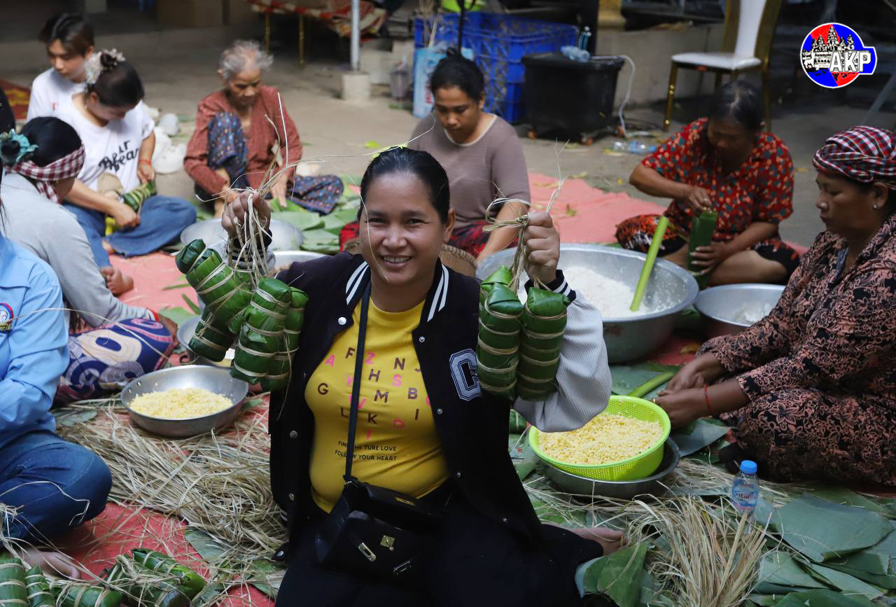 AKP Phnom Penh, August 05, 2025— Villagers from Niroth village, Sangkat Ta Ngov Krom, Khan Chbar Ampov, Phnom Penh, gather this afternoon to cook 5,000 Num Ansorm, Cambodian sticky rice cakes, to donate to Cambodian frontline soldiers. Photo: Lon Jadina
