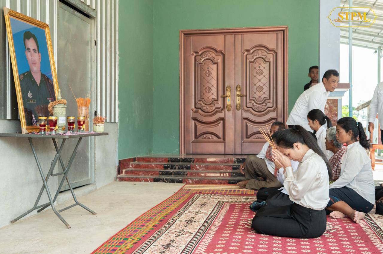 AKP Takeo, August 03, 2025— First Lady Lok Chumteav Dr. Pich Chanmony Hun Manet pays her last respects to fallen soldier Mao Sea of Battalion No. 382’s Intervention Brigade No. 8, in Prey Chour village, Popel commune, Tram Kak district, Takeo province, this morning...