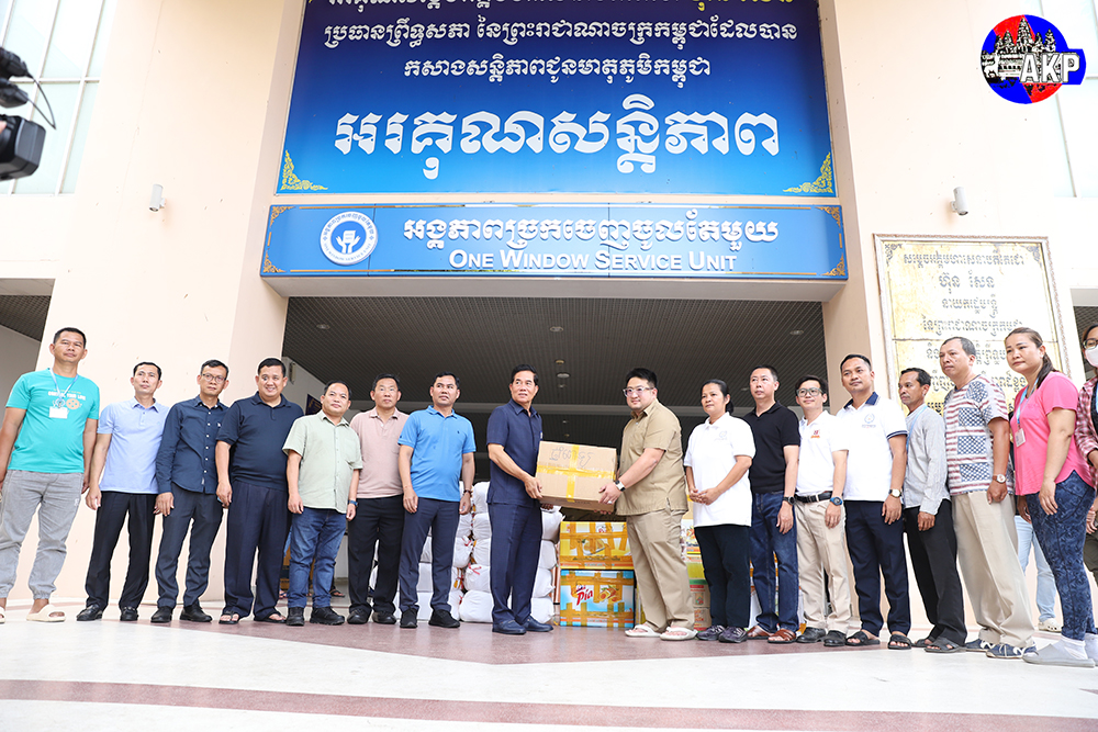 AKP Phnom Penh, July 26, 2025— H.E. Khuong Sreng (C, Pic. 1), Phnom Penh Municipal Governor, receives funds, foodstuffs, medicine, and other necessities from Philanthropists to support and encourage the Cambodian frontline soldiers and displaced civilia...