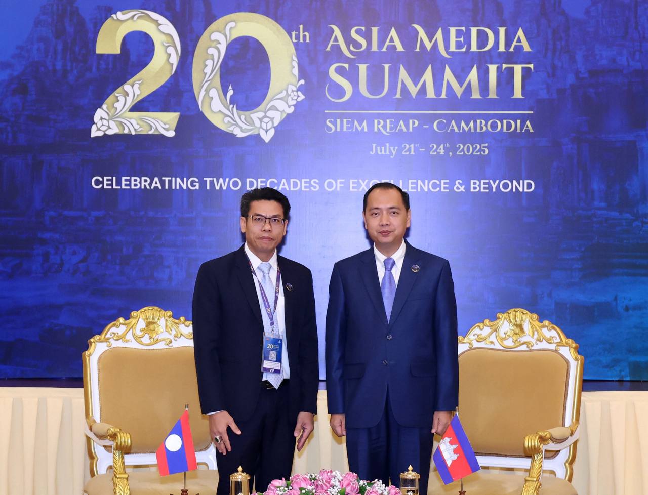 AKP Siem Reap, July 22, 2025— Minister of Information of the Kingdom of Cambodia H.E. Neth Pheaktra (R, Pic. 1) poses for a photo with visiting Mr. Sakhone Phommalath, Deputy Head of the Propaganda and Training Board of the Central Committee of the Lao People’s Revolutiona...