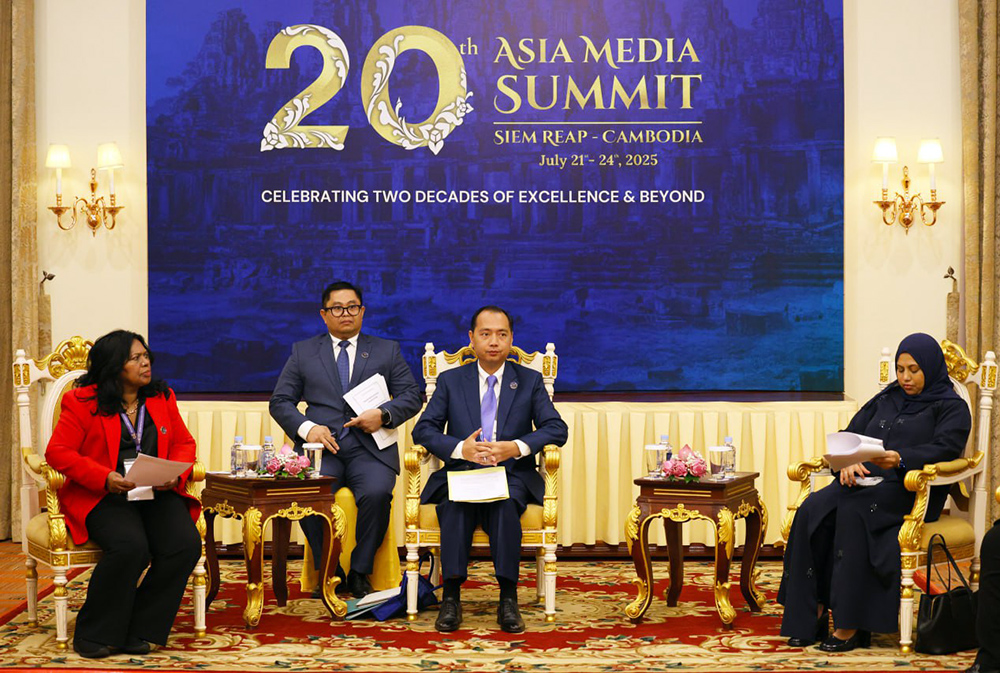 AKP Siem Reap, July 22, 2025— National and International delegates (Pic. 1) take turn to share insights during the Session 3 of the 20th Asia Media Summit under the theme: “Information as a Public Good: Upholding Credibility & Empowering Democracy,” held in Siem Re...