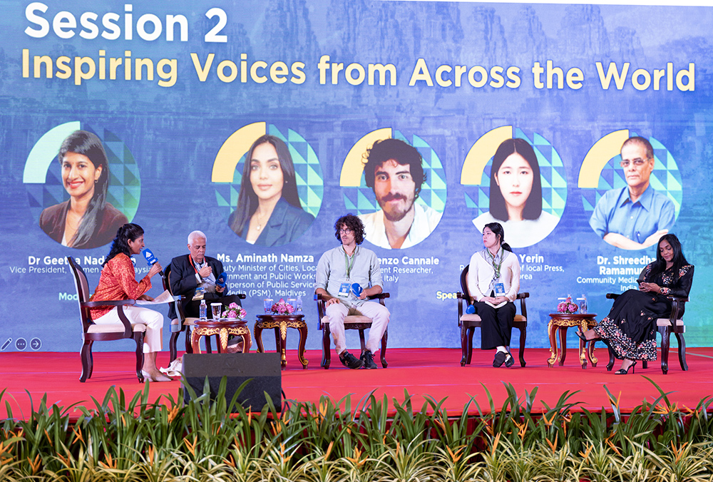 AKP Siem Reap, July 22, 2025— International speakers from India, Italy South Korea, and Maldives take turn to share their ideas during the Session 2 of the 20th Asia Media Summit under the theme: “Inspiring Voices from Across the World,” held in Siem Reap provincia...