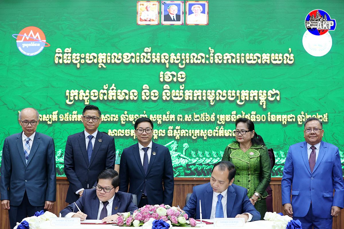 AKP Phnom Penh, July 10, 2025— Minister of Information H.E. Neth Pheaktra (R, Sitting, Pic. 1) and H.E. Sou Socheat, Delegate of the Royal Government in charge as Director General of the Securities and Exchange Regulator of Cambodia (SERC), sign at the mini...