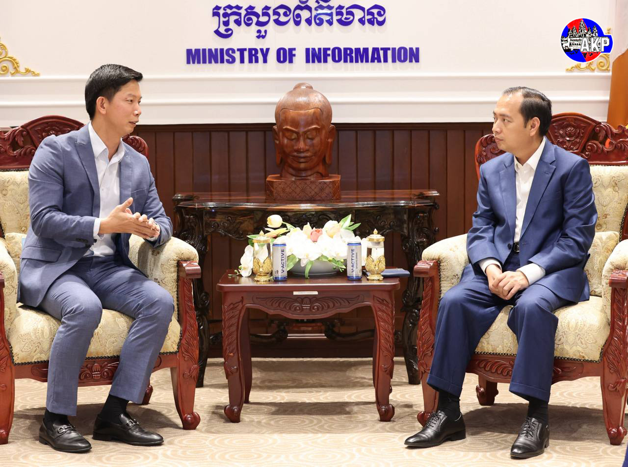 AKP Phnom Penh, July 10, 2025— Minister of Information H.E. Neth Pheaktra (R, Pic. 1) meets with H.E. Khov Chhay, President of the Kun Khmer Federation, and his colleagues, at the ministry this afternoon. Photo: Khem Sovannara