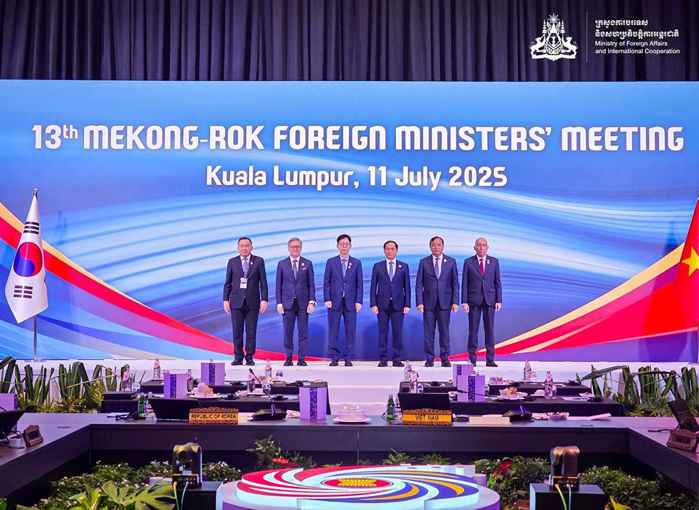 AKP Kuala Lumpur, July 11, 2025-- Deputy Prime Minister and Minister of Foreign Affairs and International Cooperation of Cambodia, H.E. Prak Sokhonn (2nd R, Pic. 1), poses for a group photo with his ASEAN counterparts at the 13th Mekong-ROK Foreign Ministers’ Meeting in Kuala Lump...