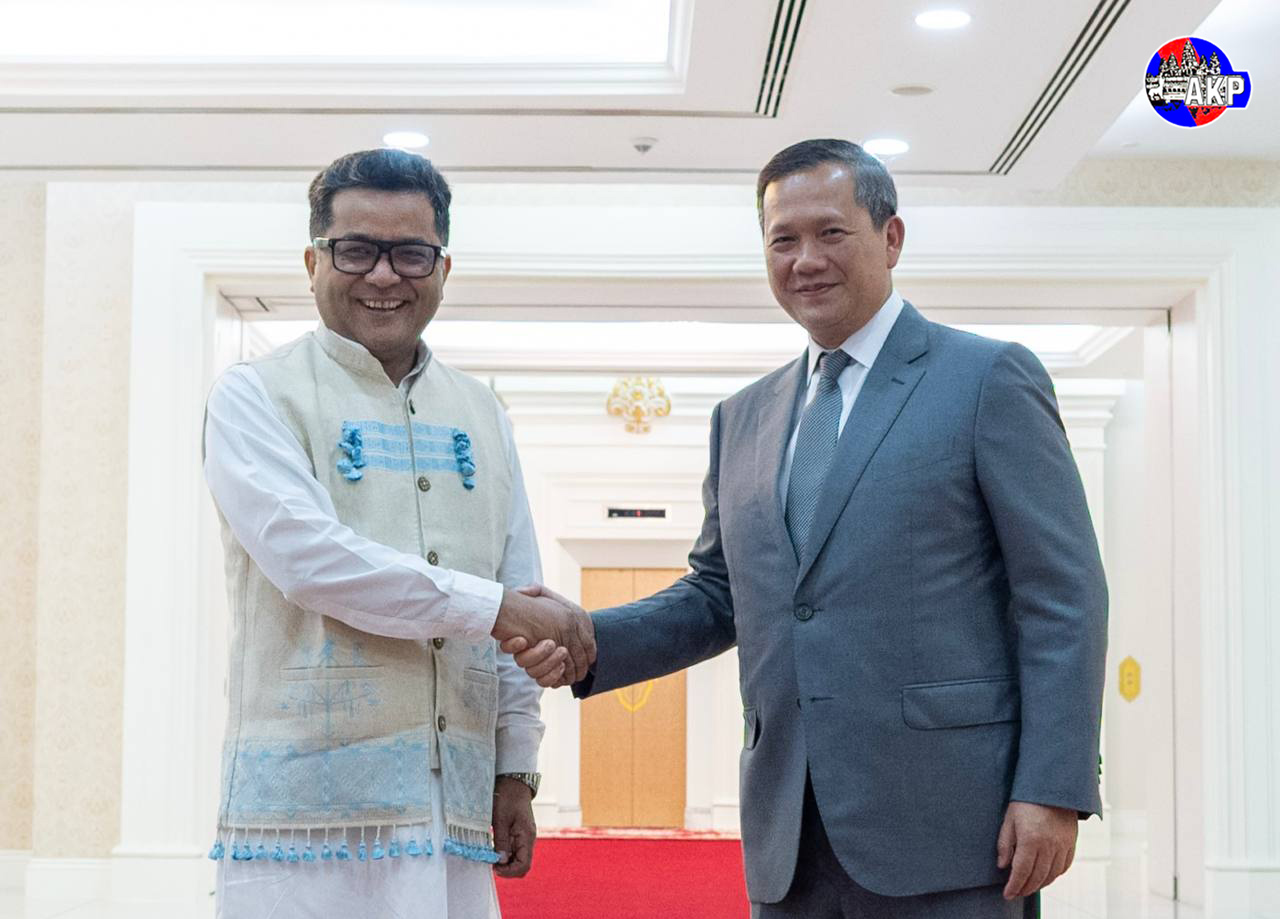 AKP Phnom Penh, July 07, 2025— Samdech Moha Borvor Thipadei Hun Manet (R, Pic. 1), Prime Minister of Cambodia, shakes hands with H.E. Martin Vávra, outgoing Ambassador of the Czech Republic to the Kingdom of Cambodia, prior to the courtesy farewell meeting at the P...