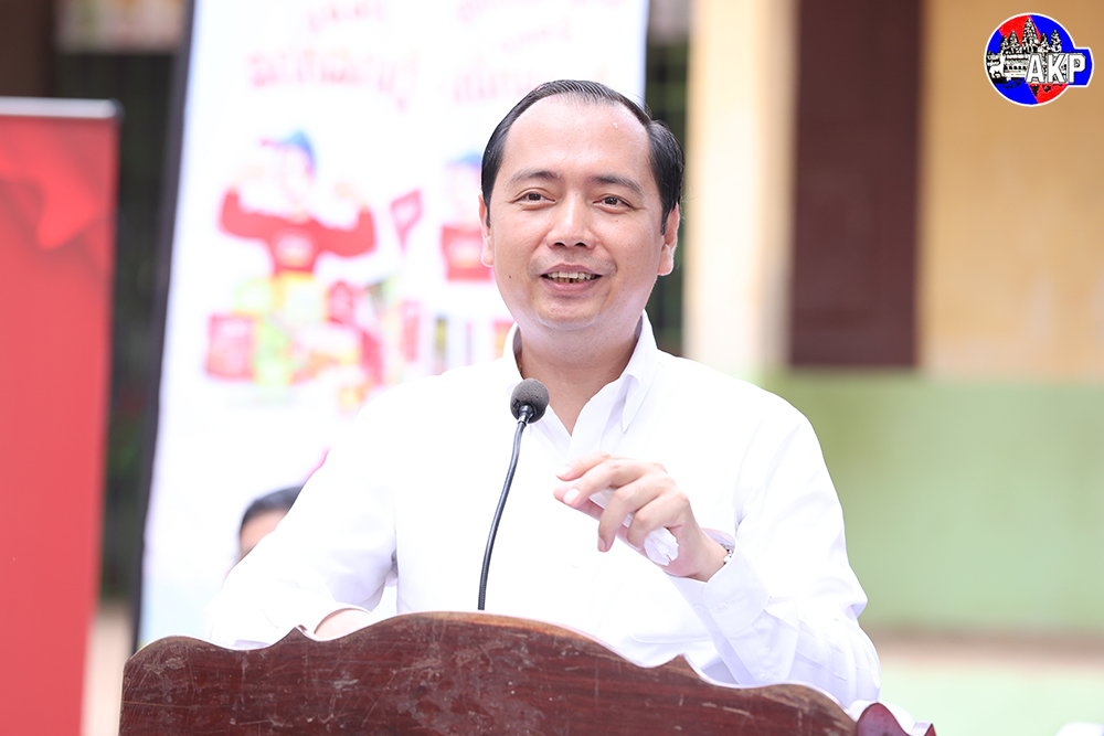 AKP Kratie, June 01, 2025 — Minister of Information H.E. Neth Pheaktra (R, Pic. 1), Head of the Royal Government Working Group for Kratie province, and his spouse hand over school bags to pupils at the distribution ceremony of school bags and supplies, biscuits, et...