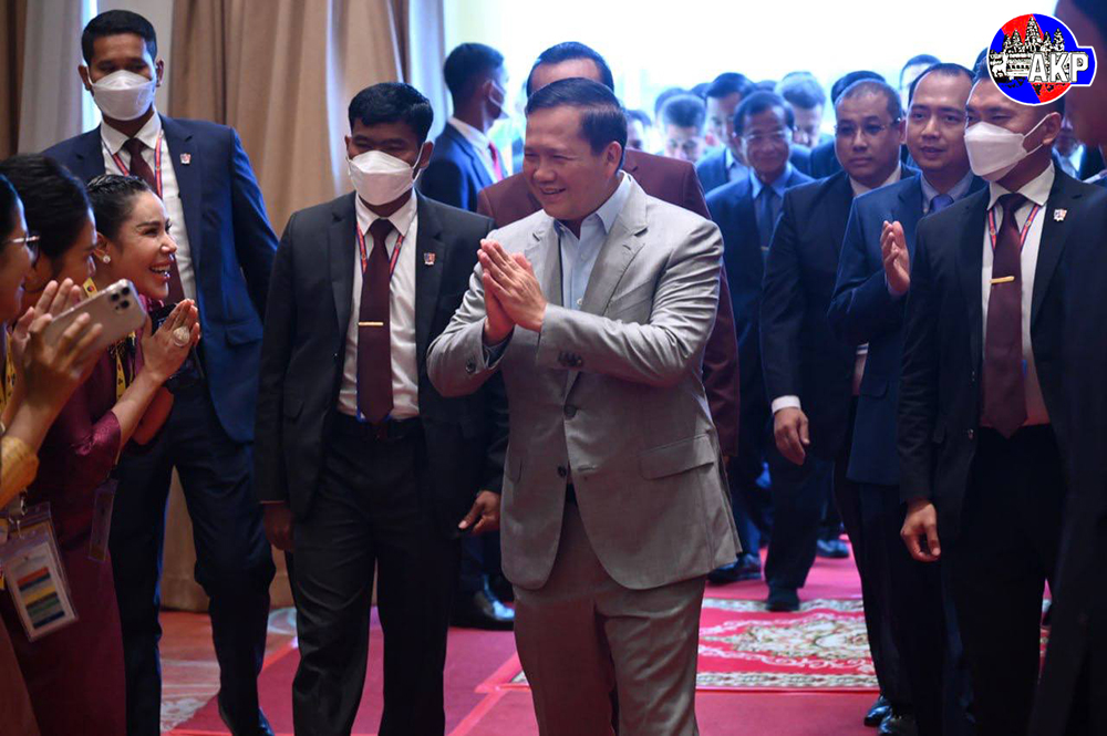 AKP Phnom Penh, May 03, 2025 — Prime Minister of the Kingdom of Cambodia, Samdech Moha Borvor Thipadei Hun Manet (Pic. 1) greets the participants upon arrival for the 7th Gathering with journalists in Cambodia, held at the Chroy Changvar International Convention and Exhi...