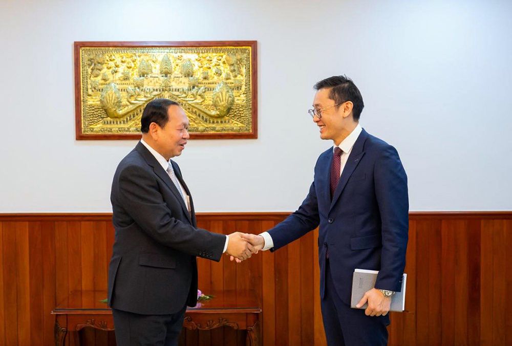 AKP Phnom Penh, April 29, 2025— H.E. Chhay Rithisen (L, Pic. 1), Minister of Rural Development, greets H.E. Derek Yip, Ambassador of Australia to Cambodia, prior to their meeting here at the ministry this morning. Photo: Ministry of Rural Development