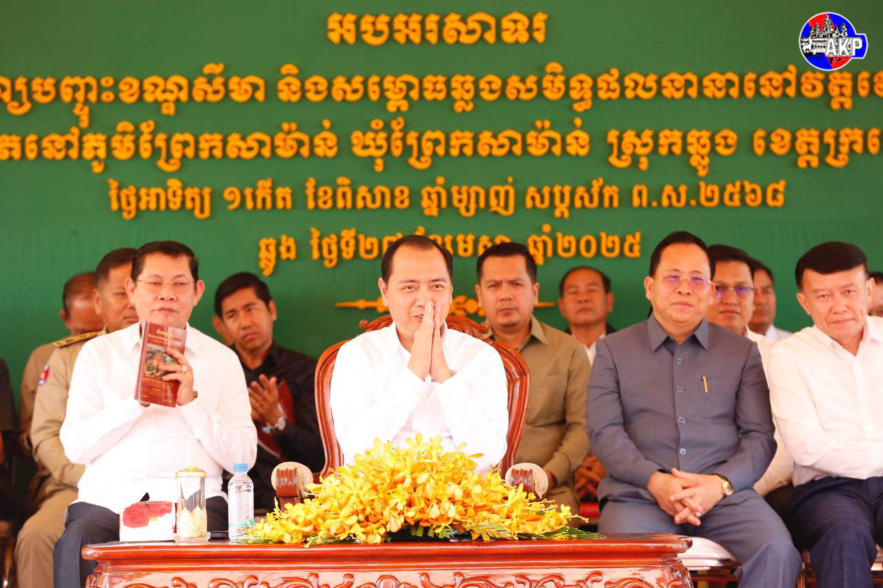 AKP Kratie, April 27, 2025— H.E. Neth Pheaktra (C, Pic. 1), Minister of Information and Head of the Royal Government Working Group for Kratie Province, presides over the inauguration ceremony of a new temple and other achievements at Prek Saman...