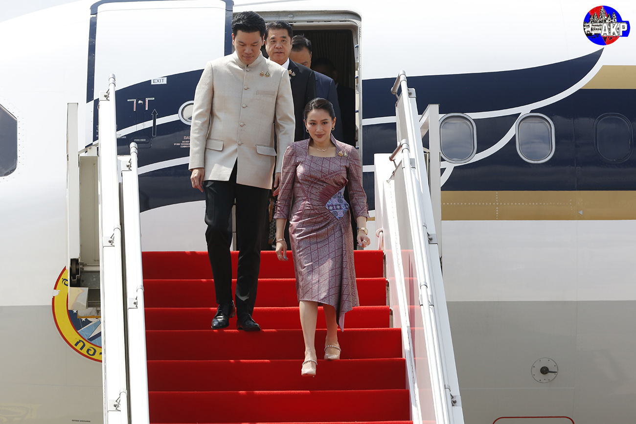 AKP Phnom Penh, April 23, 2025— H.E. Mrs. Paetongtarn Shinawatra (R, Pic. 1), Prime Minister of the Kingdom of Thailand and her spouse disembark from a special aircraft upon their arrival at Phnom Penh International Airport this morning to begin their two-day official visit to...