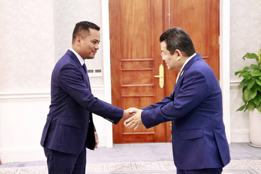 AKP Phnom Penh, April 21, 2025— H.E. Aphi Santepundit Sar Sokha (L, Pic. 1), Deputy Prime Minister and Minister of the Ministry of Interior, greets Thai Ambassador to Cambodia H.E. Tull Traisorat prior to their courtesy meeting at the ministry in Phnom Penh this afternoon....