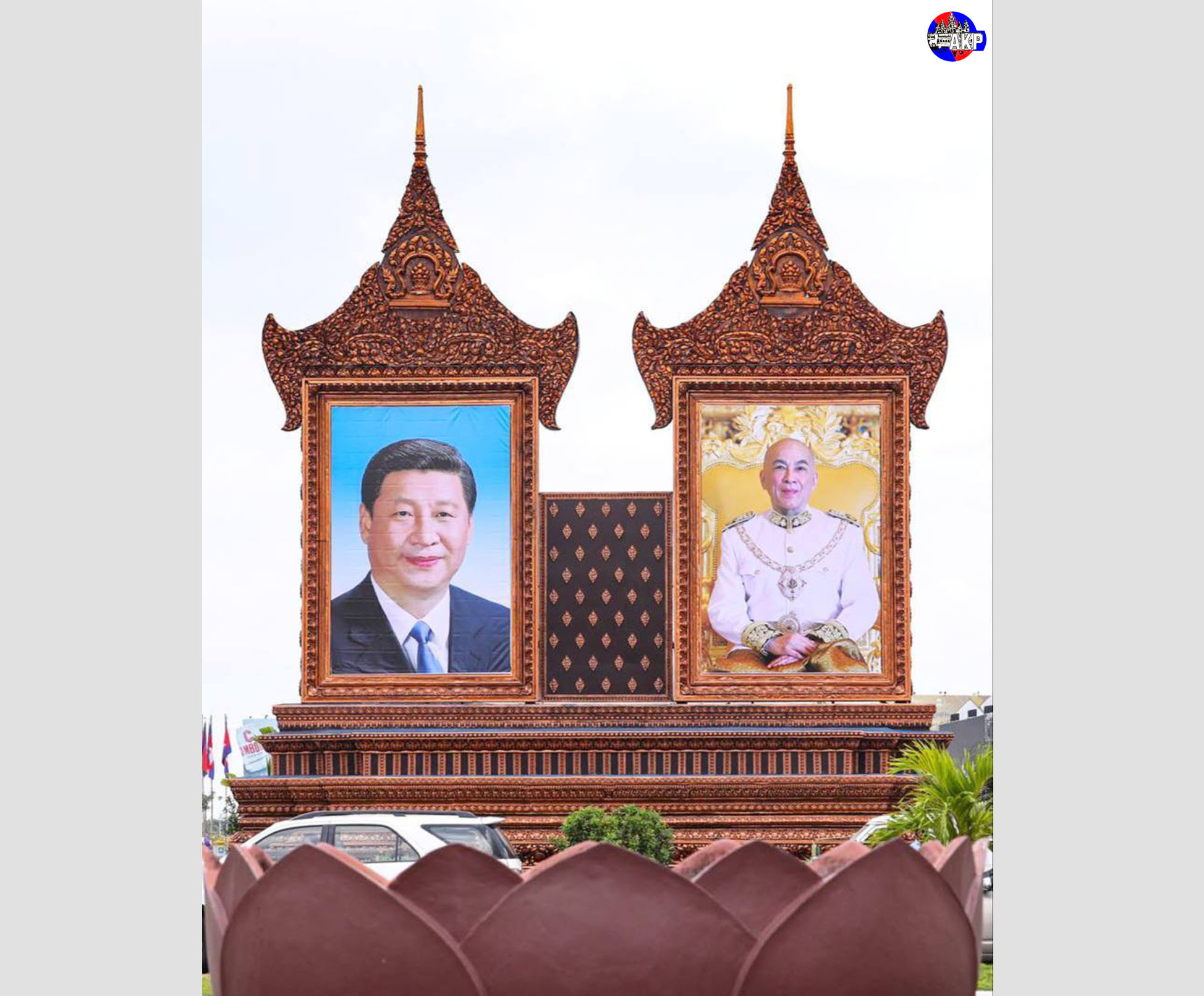 AKP Phnom Penh, April 16, 2025— Display of the royal portrait of His Majesty Preah Bat Samdech Preah Boromneath Norodom Sihamoni, King of Cambodia, and the portrait of H.E. Xi Jinping, President of the People’s Republic of China, as well as the hoisting of nati...