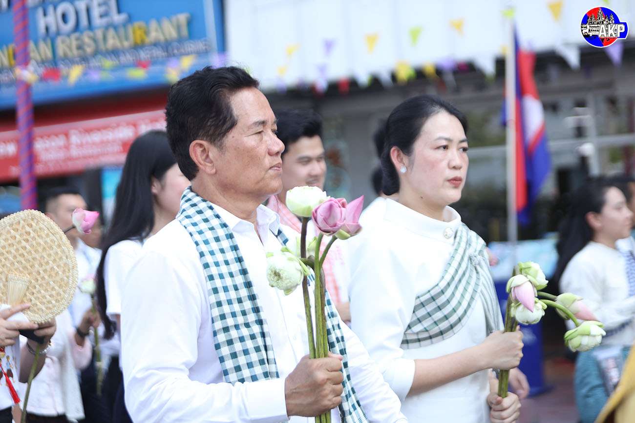 AKP Phnom Penh, April 16, 2025– Phnom Penh Municipal Governor H.E. Khuong Sreng (L, Pic. 1) and his spouse together with family members, colleagues and the general public attend the Buddha statue procession and bathing ceremony this afternoon, on the last day of th...