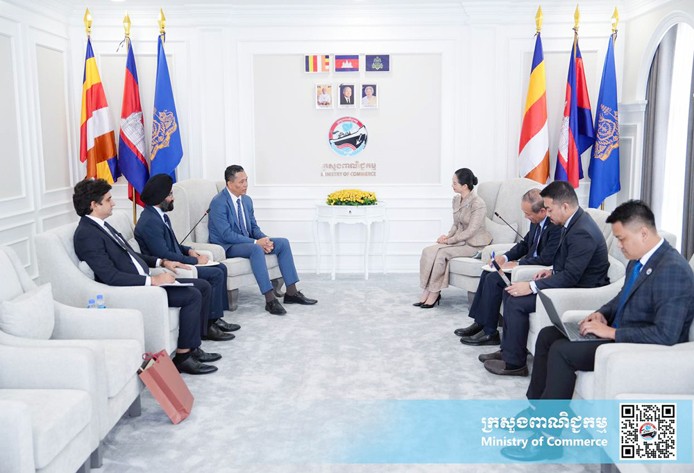 AKP Phnom Penh, April ០7, 2025— H.E. Mrs. Cham Nimul (4th R, Pic. 1), Minister of Commerce of Cambodia, receives a courtesy call from H.E. Vanlalvawna Bawitlung (3rd L, Pic. 1), Ambassador of the Republic of India to the Kingdom of Cambodia, at the ministry’s office in Phn...