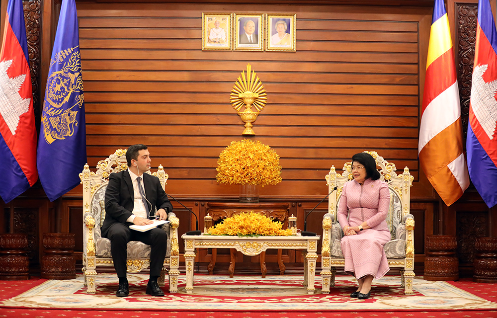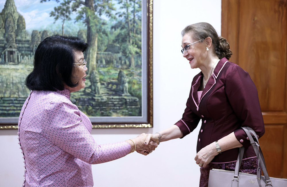 AKP Phnom Penh, April 01, 2025— Samdech Maha Rathsapheathika Thipadei Khuon Sudary (L, Pic. 1), President of the National Assembly (NA) of Cambodia, greets Dr. Marianna Trias, Representative of the World Health Organisation (WHO) to Cambodia, prior to their courtesy meetin...
