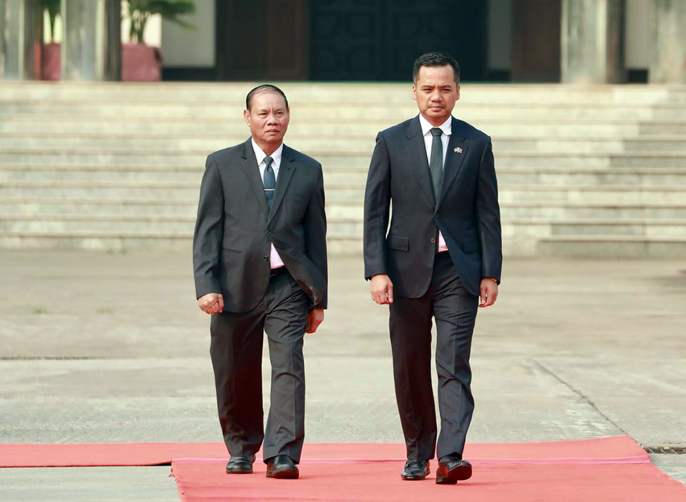 AKP Vientiane, March 25, 2025— Cambodia’s Deputy Prime Minister, Minister of Interior, H.E. Aphi Santepundit Sar Sokha (R, Pic. 1) walks alongside his Lao counterpart H.E. Gen. Vilay Lakhampong before co-chairing a meeting on outcomes of the 2024 cooperation an...