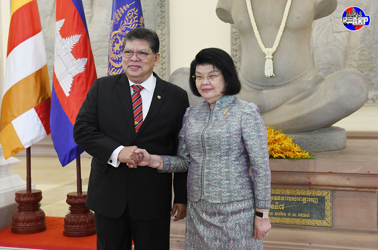 AKP Phnom Penh, March 25, 2025-- Samdech Maha Rathsapheathika Thipadei Khuon Sudary (R, Pic. 1), President of the National Assembly (NA) of the Kingdom of Cambodia, poses for a photo with H.E. Dr. Tan Sri Dato Johari bin Abdul, Speaker of the House of Representatives o...