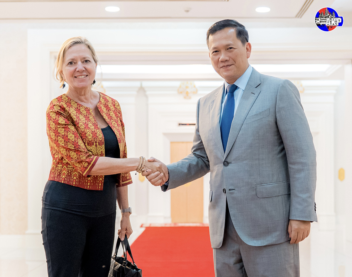 AKP Phnom Penh, March 25, 2025— Cambodian Prime Minister Samdech Moha Borvor Thipadei Hun Manet (R, Pic. 1) shakes hands with Ms. Mariam J. Sherman, Country Director of World Bank for Cambodia, Vietnam and Lao PDR, prior to their courtesy meeting at the Peace Palace he...