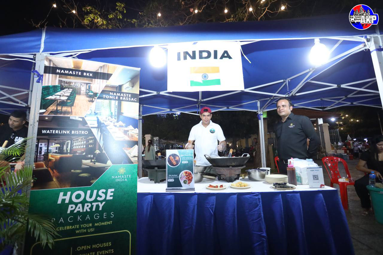 AKP Phnom Penh, March 22, 2025-- Walk Street this week hosts the Mekong-Ganga Cooperation Food Festival 2025, organised by the Embassy of the Republic of India in Cambodia, in front of Ounalom Pagoda, Phnom Penh this evening. Photo: Serey Oddom