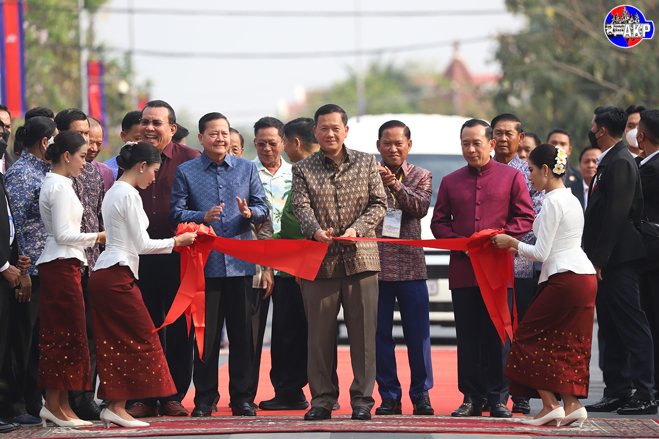 AKP Takeo, March 22, 2025-- Prime Minister Samdech Moha Borvor Thipadei Hun Manet (Pic. 1) cuts red ribbon to inaugurate the "9th River Festival 2025" Fair in Takeo province this afternoon. Photo: Kul Renny